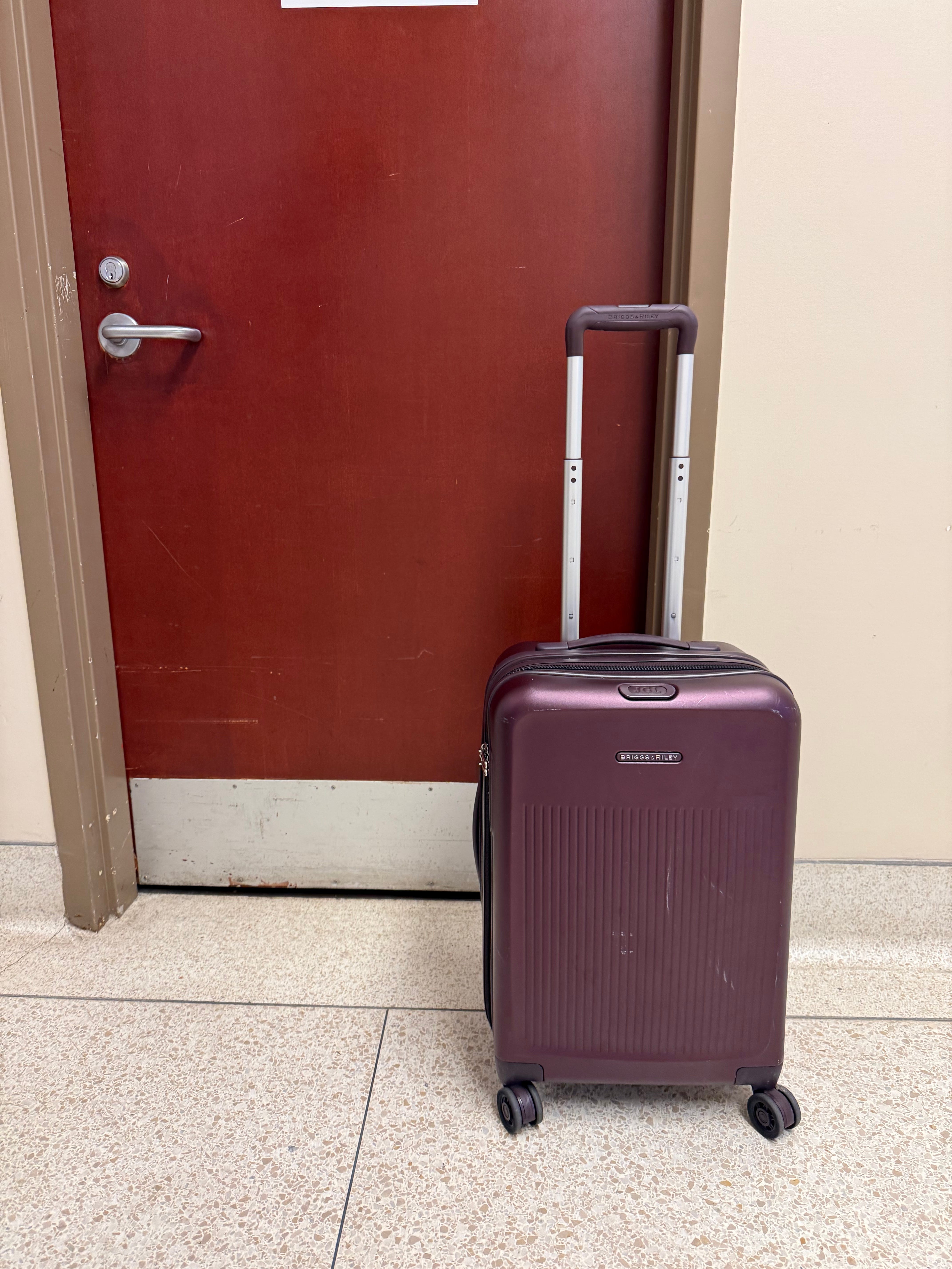 My roller bag was stuck in limbo: beyond the fork in the belt where they would’ve retrieved it for additional screening, but still under the metal canopy reminding me not to reach in to grab it. I was almost in the clear.
